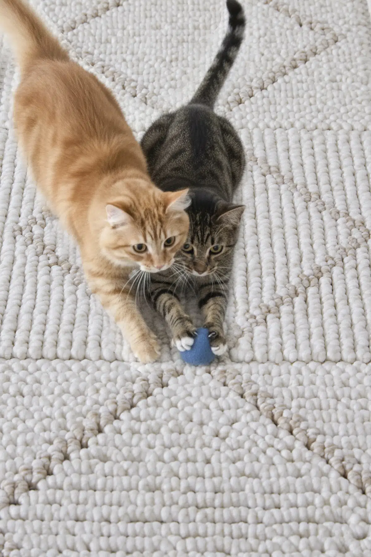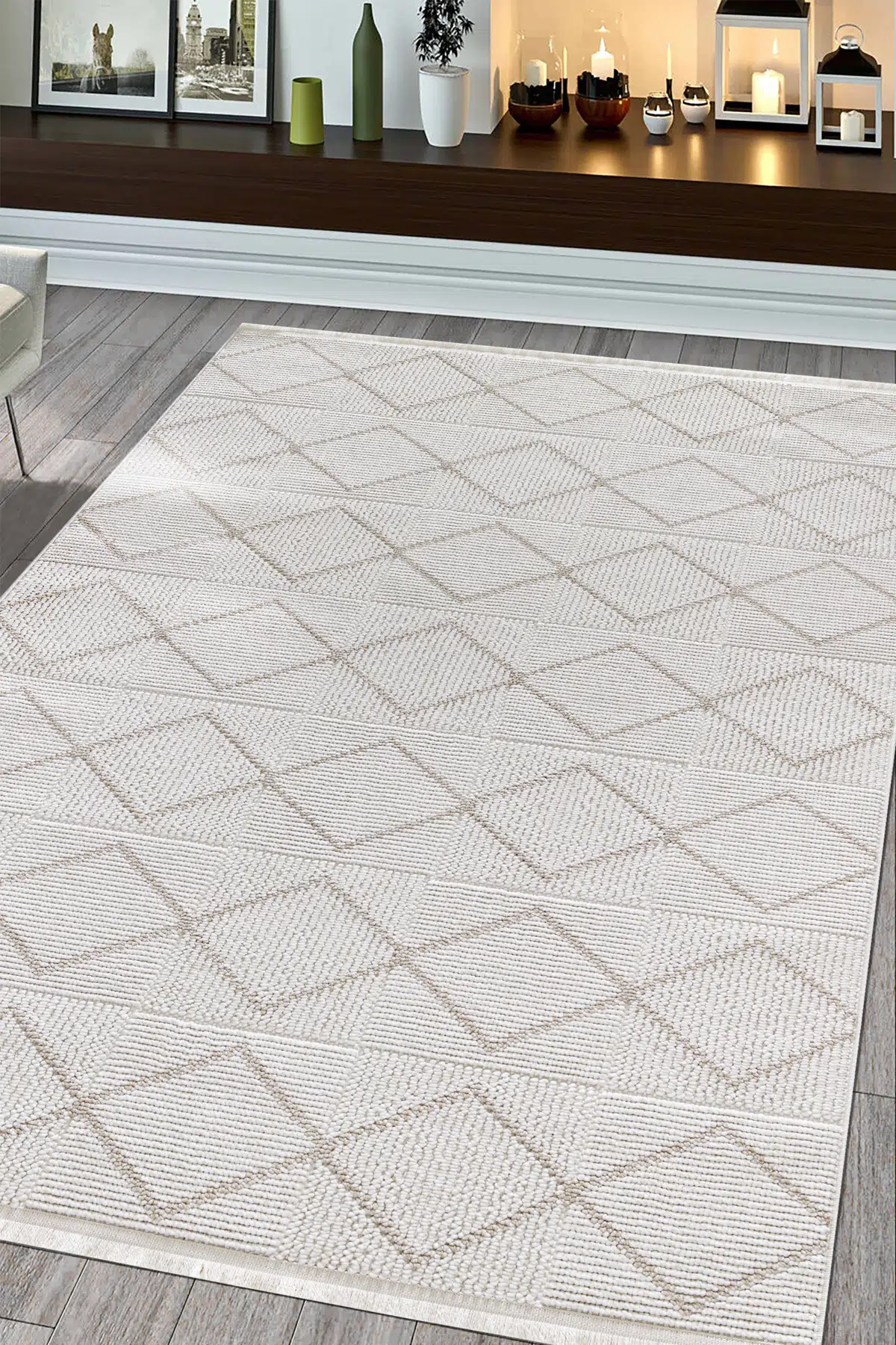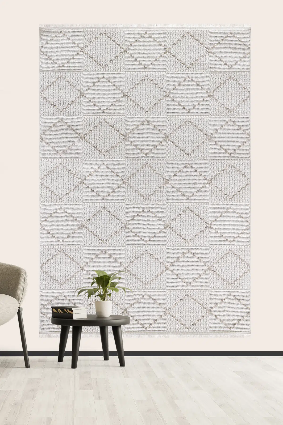 • Malzeme: Doğal polyester iplikler ve bukleler ile modern halı dokuma makinelerinde üretilmiştir. Tüy çıkma ya da tozuma yapmaz.